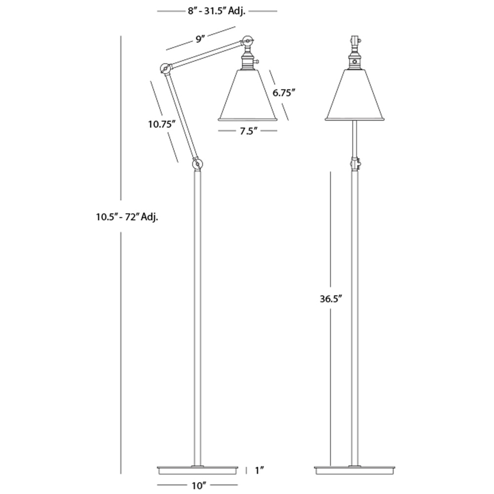 Alloy Task Floor Lamp in Warm Brass Finish and matching metal shade has a sleek mechanical function in mind. Crisp geometry and polished metal make this piece the perfect choice to elevate your space.