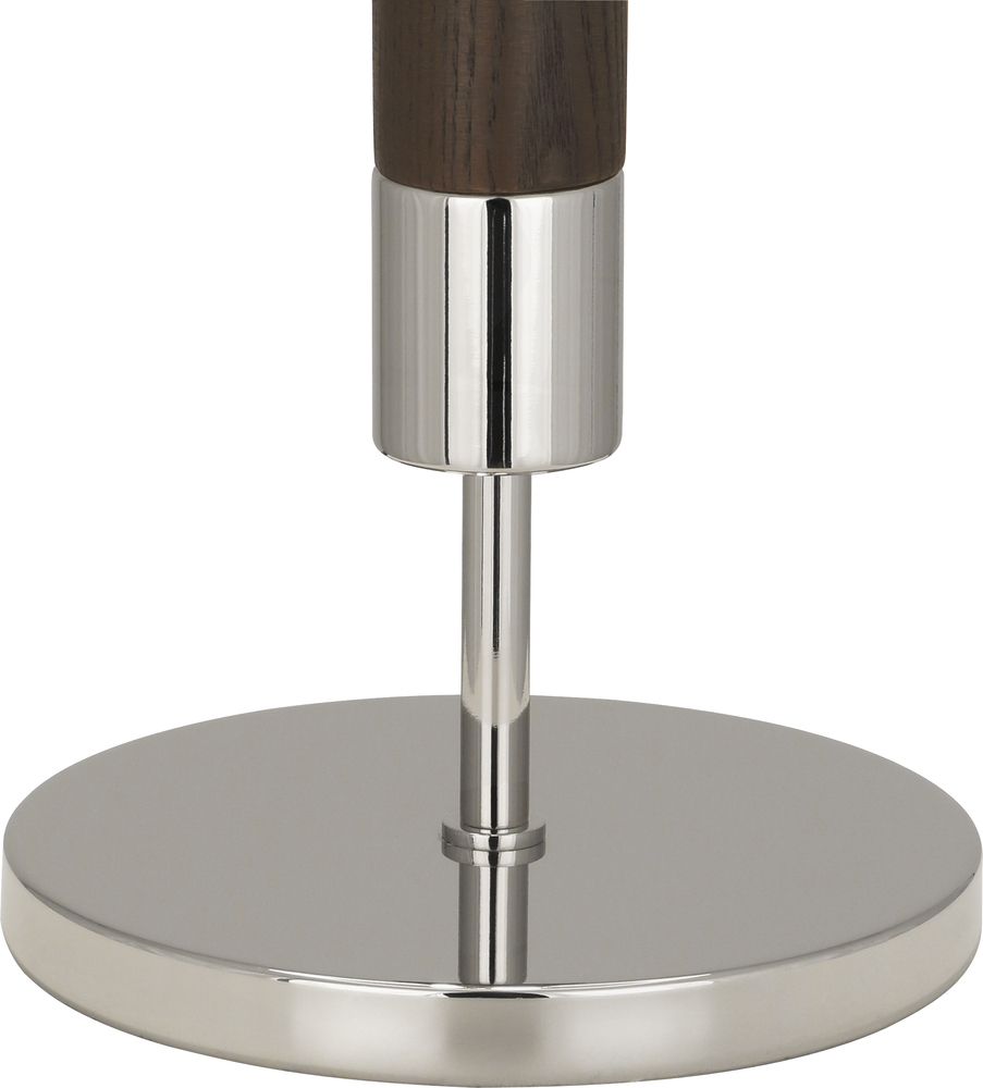 Polished Nickel Finish with Dark Walnut Finished Wood Column Dexter Table Lamp with Oyster Linen Shade - Polished, smooth and impressive, our Dexter table lamp is an elevated style based on retro elements Inspired by iconic Mid-Century Modern houses and decor in Palm Springs, Dexter exudes a cool, chic vibe that is timeless and fresh.