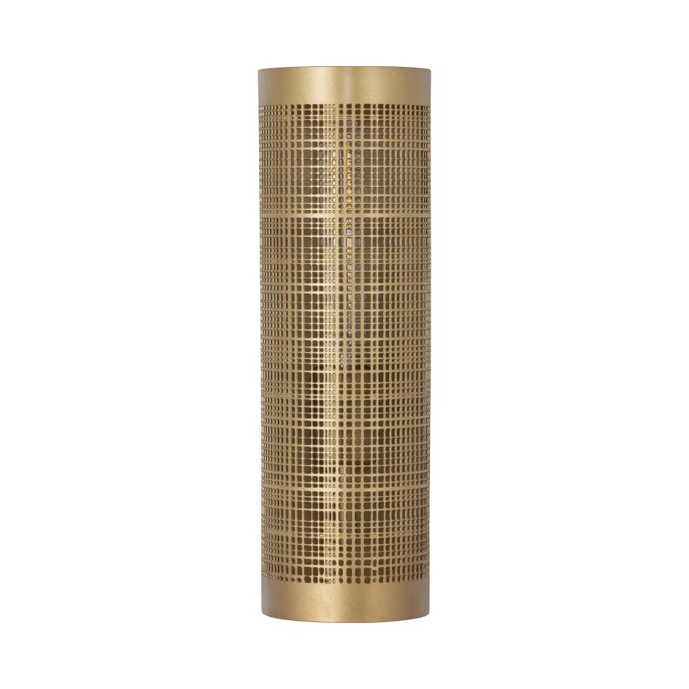 A crosshatching etched pattern on metal shades finished in Gold or Matte Black powder coated finishes. Available in multiple sizes of pendants and matching ADA compliant wall sconce.
