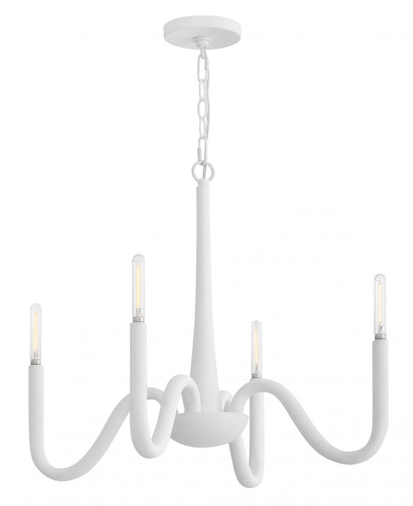A breath of coastal freshness, Maris effortlessly complements any living or dining space. Exaggerated, curved arms with exposed candelabra lamps radiate from Maris’s center, evoking a formal silhouette. A white Textured Plaster finish imparts a chic, Californian feel.